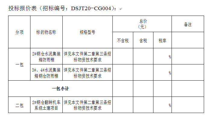 1.投標(biāo)總價(jià)含增值稅發(fā)票、安裝調(diào)試等費(fèi)用。(稅率 %)